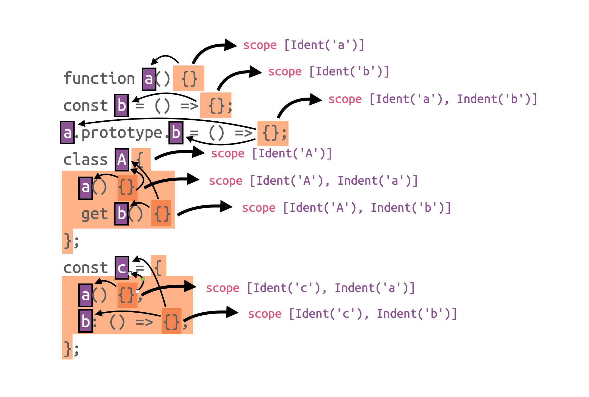 We do similar things if a function is assigned to a.prototype.b, for example. For functions that are members of classes or object expressions, we also consider the name of the “parent”. A similar pattern arises there, as class expressions do not have to have an explicit name either. In which case, we infer that from its context, and so on.